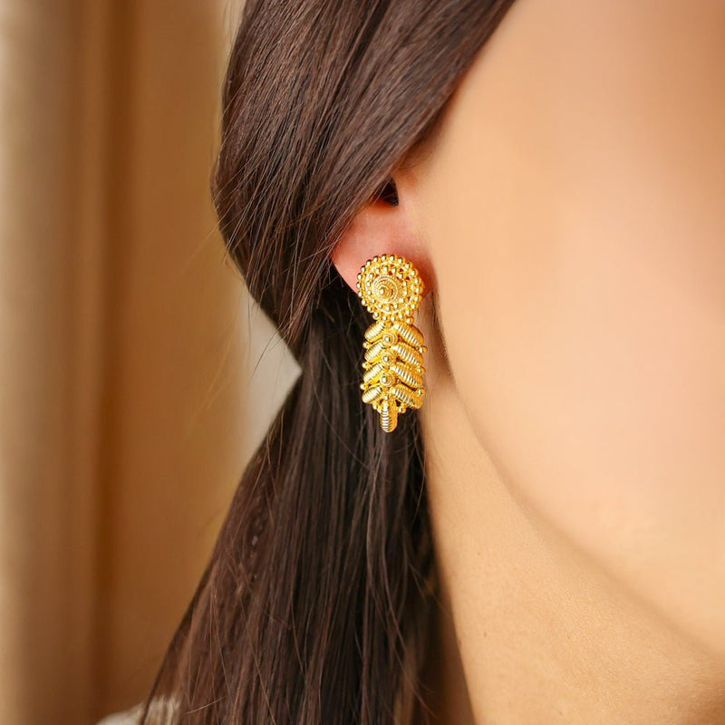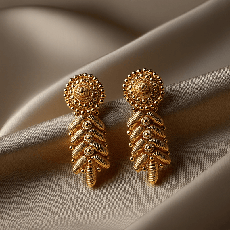 Brincos Pendente em Ouro 19kl com Casulos e Granitos - Sofisticação e Design Exclusivo