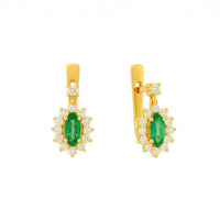 Brincos Princesa em Ouro 19kl com Esmeralda e Diamantes