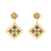 Pendientes Sonhos de Alfama en plata 925 bañada en oro con esmalte azul, inspirados en los azulejos portugueses.