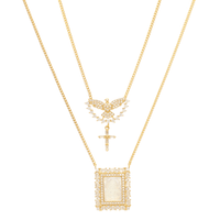 Escapulario en Plata 925 Baño de Oro con Imagen Religiosa en Nácar adornada con Circonitas con Paloma y Cruz