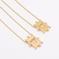 Escapulario en Plata 925, bañado en Oro de 18k, adornado con dos Medallas con Paloma Flanqueada por Zirconias.