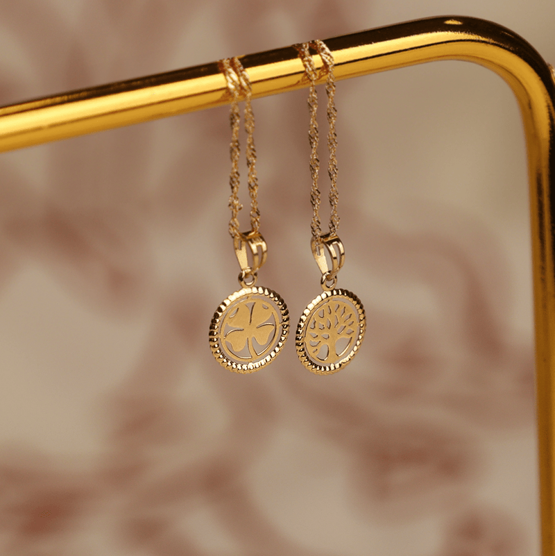La medalla del Árbol de la Vida, también en oro de 19 quilates, es un símbolo universal de crecimiento, fuerza y conexión con el mundo que nos rodea. Este collar es ideal para quienes buscan una pieza que represente valores personales y espirituales, a la vez que añade un toque de estilo refinado a la vida cotidiana o a ocasiones especiales. Combinando simbolismo y elegancia, este collar es la elección perfecta para cualquier ocasión.