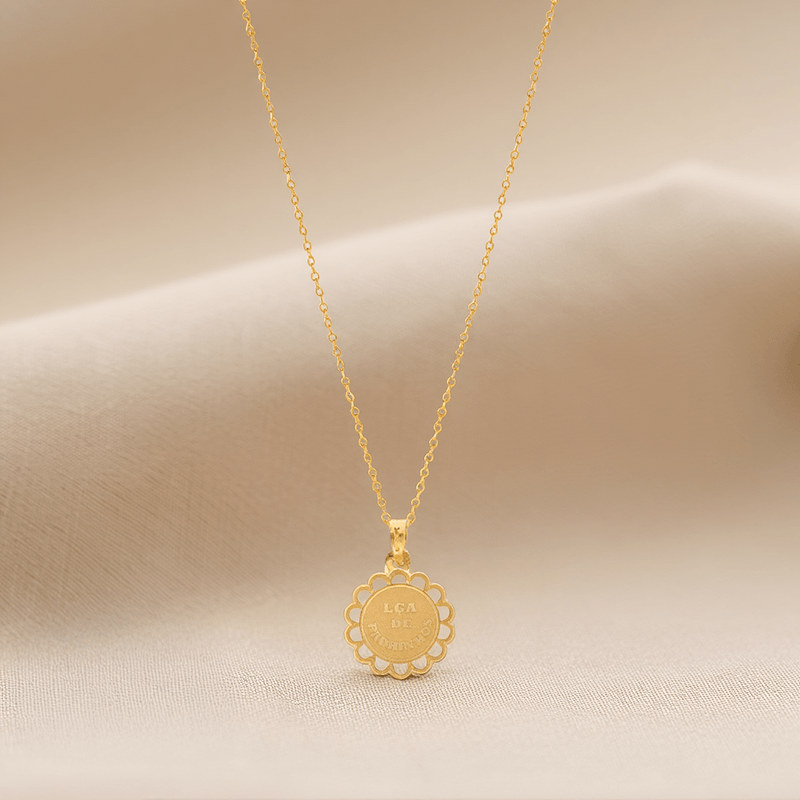 Collar de oro de 19 quilates con medalla de flor "Collar de los Padrinos"