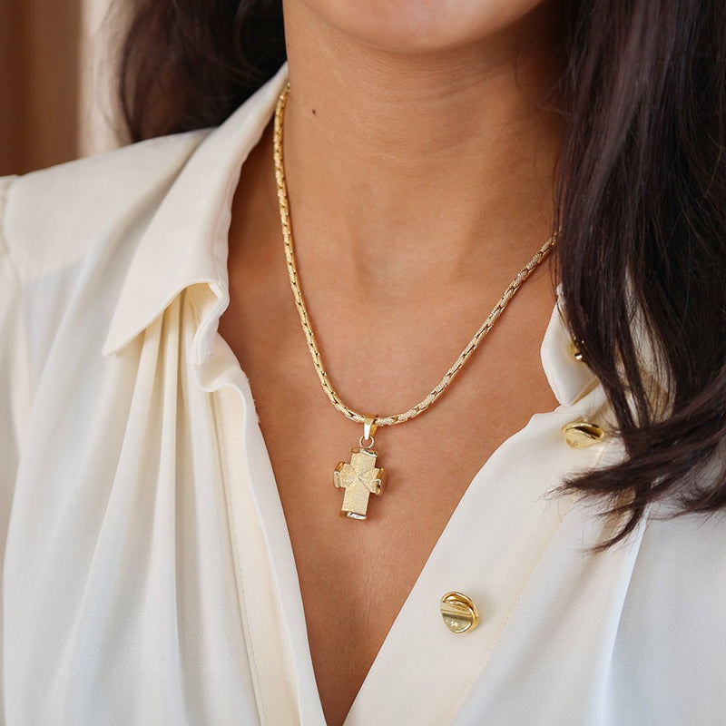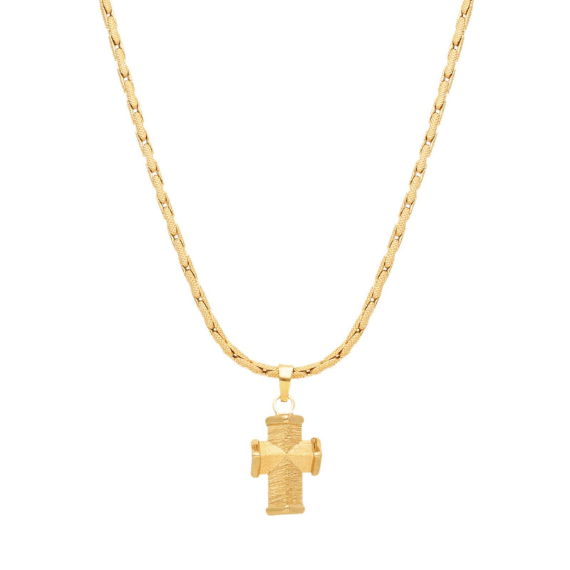 Collar de Oro de 19,2kl con Efecto Punteado, adornado con una Cruz Sólida con Efecto Cepillado
