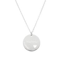 Cadena de Plata con Medallón Redondo Grabado "Madrina" 🖤 y Motivos Florales