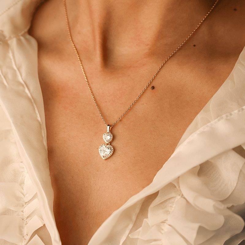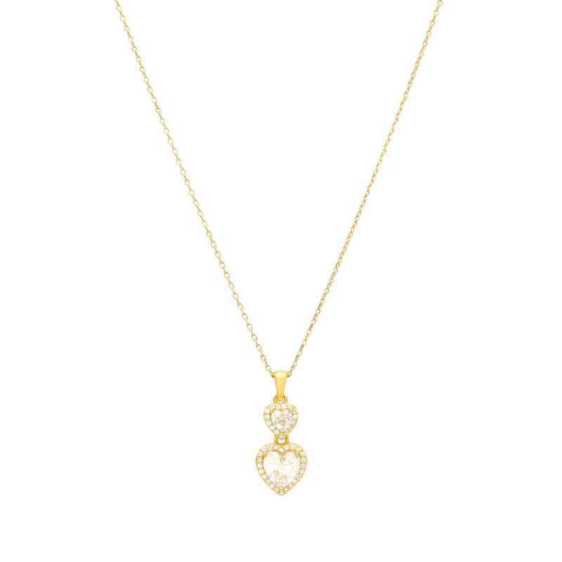 Collar de plata bañado en oro con dos circonitas de corazón