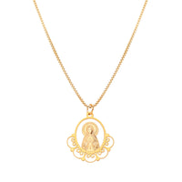 Este collar de plata bañado en oro con la medalla de Nuestra Señora de Fátima es un símbolo de profunda fe, protección y esperanza . Nuestra Señora de Fátima es conocida por sus apariciones y mensajes de amor y conversión, y es uno de los iconos más venerados del cristianismo. Su imagen en esta medalla representa la luz divina que guía y fortalece a quienes confían en ella.