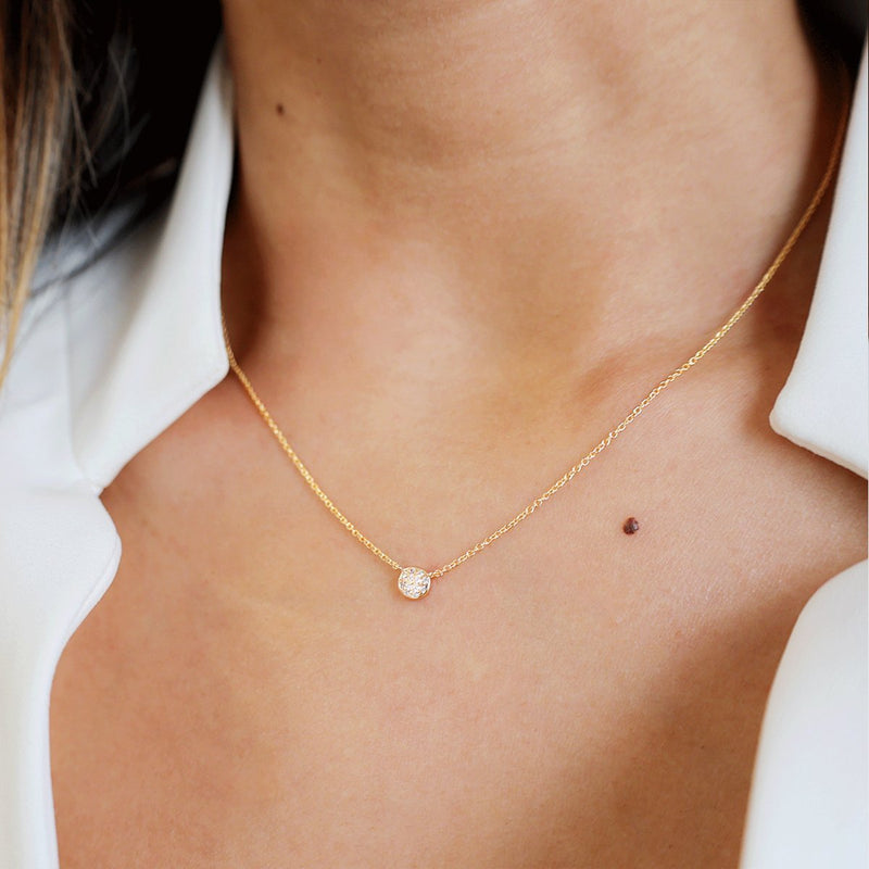 Collar de plata bañada en oro 925 con colgante redondo adornado con circonitas