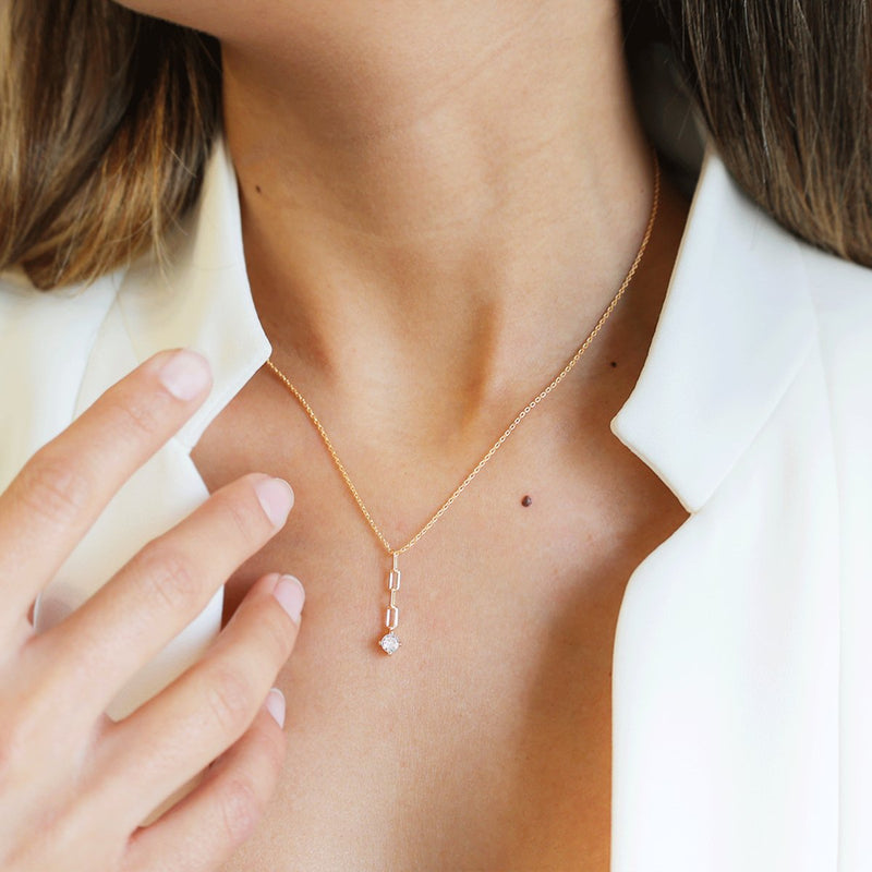 El colgante de circonita cúbica aporta un brillo sutil y sofisticado a la pieza, convirtiéndola en una opción encantadora para complementar cualquier conjunto. Ya sea para uso personal o como regalo para alguien especial, esta cadena es una adición deslumbrante a la colección de joyas de cualquier persona.