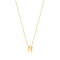 Collar con la letra R en plata (925). Disponible en plata blanca o plata dorada.