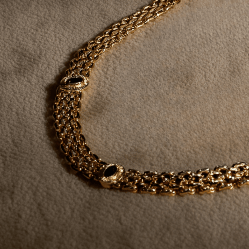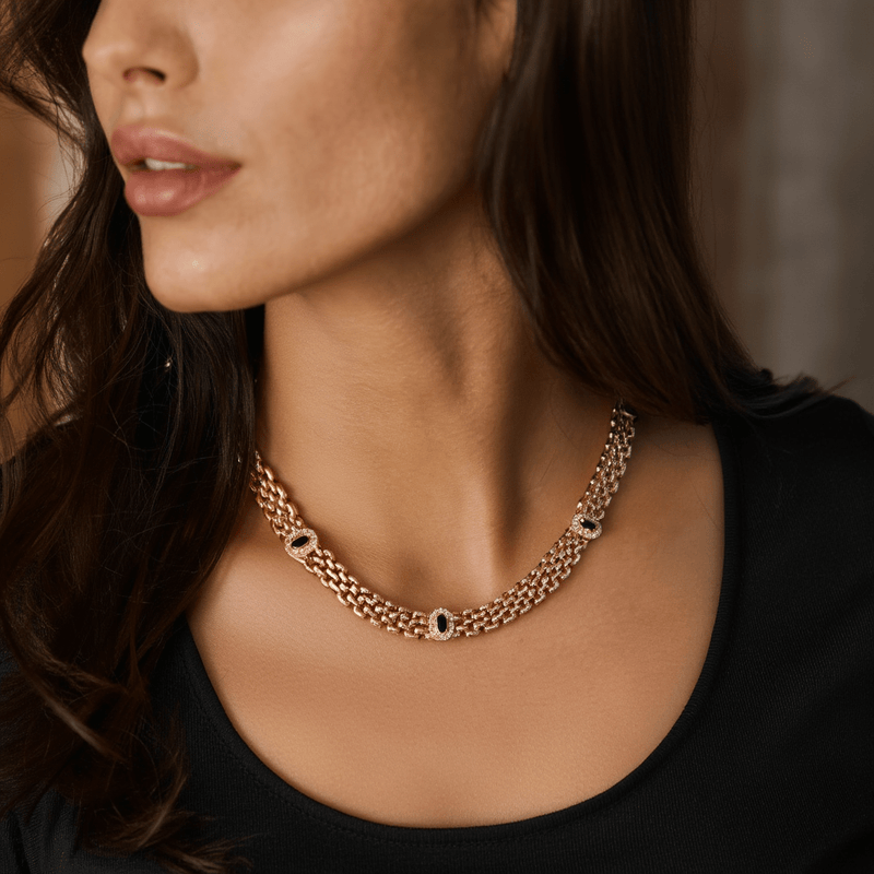 Ideal para ocasiones especiales o para añadir un toque de lujo a tu día a día, esta gargantilla es un símbolo de estilo y buen gusto, perfecta para quienes valoran la joyería única y llamativa. Un regalo inolvidable o una pieza imprescindible para tu colección.