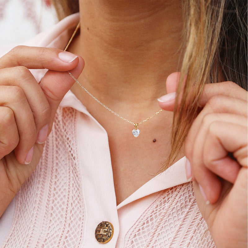 Collar Love Point en Oro 19k adornado con elegante Zirconia en corte Corazón.
