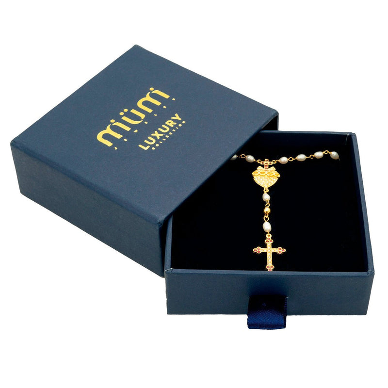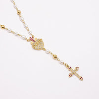 Collar Rosario en Plata de Ley (925), bañado en Oro de 18k, adornado con Perlas de Agua Dulce, y Corazón Vaticano tachonado de Circonias.
