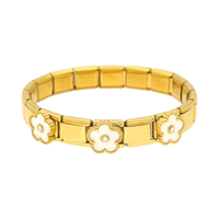 Pulsera de flor de loto de acero bañada en oro con flores de nácar