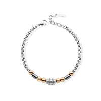 Fabricada en acero de alta calidad , esta pulsera garantiza resistencia y durabilidad, manteniéndose impecable con el paso del tiempo. Las diversas cuentas añaden un toque de textura y color, creando un contraste elegante y moderno, perfecto para quienes aprecian los detalles que marcan la diferencia.