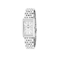 Su esfera rectangular de 32 x 21 mm le confiere un aspecto distintivo y clásico, añadiendo un toque de exclusividad a la muñeca. El brazalete de acero plateado aporta un brillo sutil y refinado, mientras que su forma compacta garantiza comodidad y ligereza para el día a día.