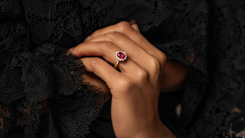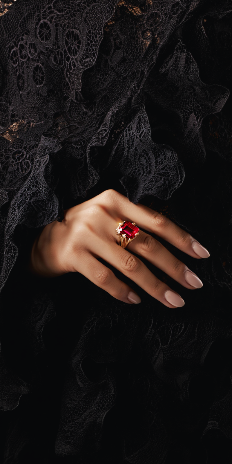 Anel Baronesa em Ouro 19kl com Pedra de Cor Rubi
