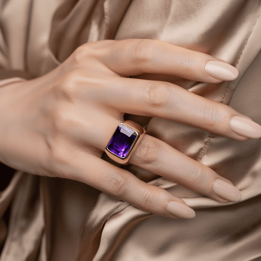 Anel Solitário em Ouro 19kl com Pedra Quadrada Roxa (T15)