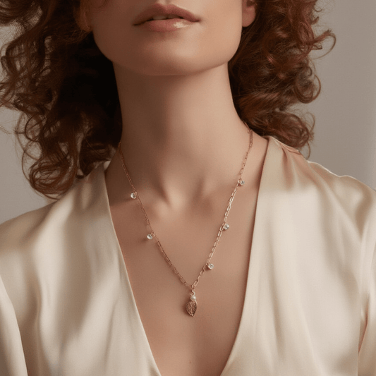 Fio Pomba em Prata Dourada com Zircónia e Madrepérola