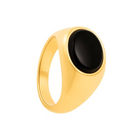 O Anel Oval em Ouro de 19.2kl adornado de Pedra Preta é uma peça que une a nobreza do ouro com a elegância intemporal da pedra preta.
