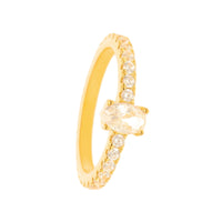 Anel Solitário em Prata Dourada com Zircónia Oval