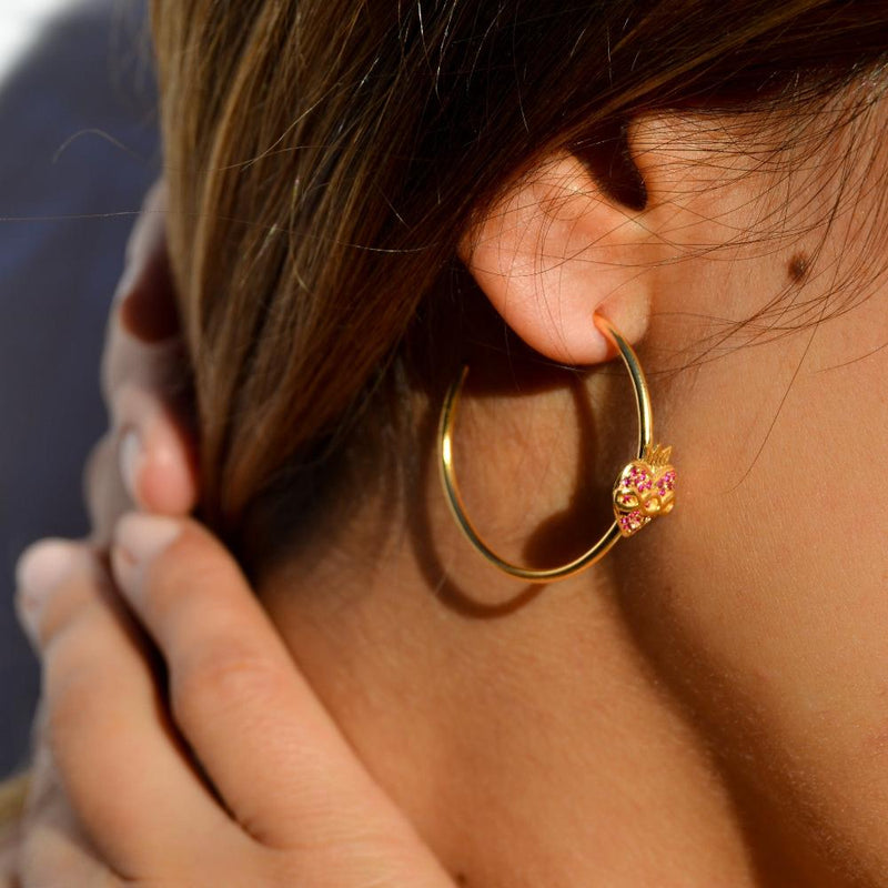 Argolas em Prata de Lei (925), adornadas de Coração Vaticano, cravejado de Zircónias de Cor Rubi
