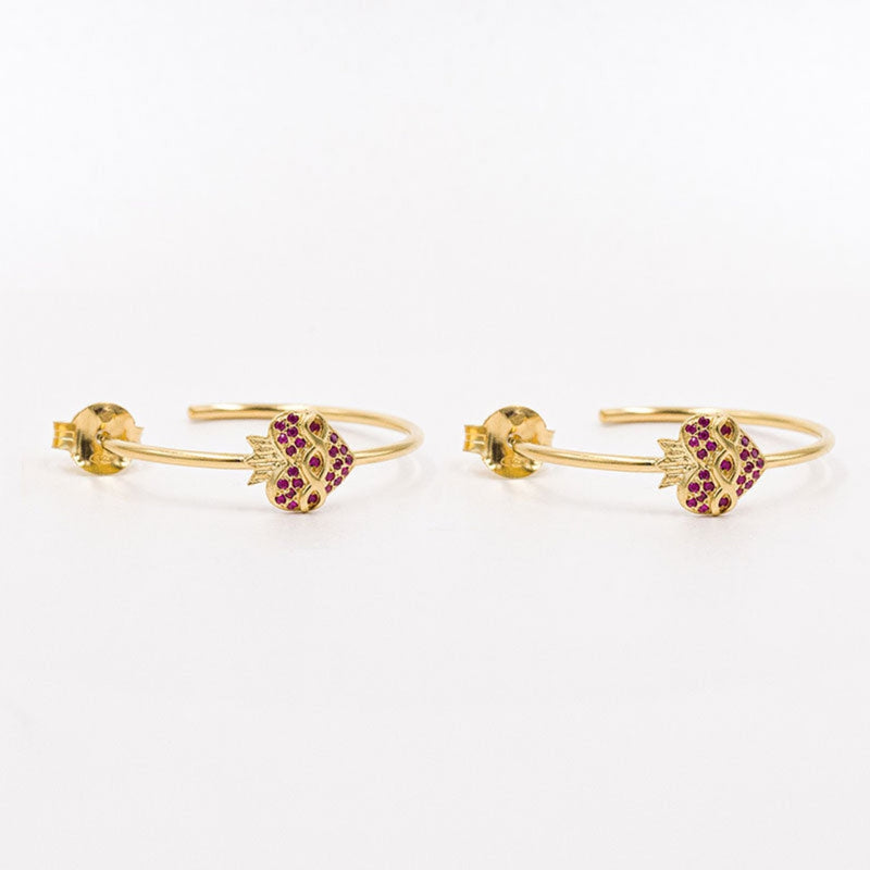 Argolas Prata 925 com Coração Vaticano e Zircónias Rubi