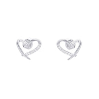 Brincos em Prata 925 com Coração Estilizado cravejado de elegantes Zircónias
