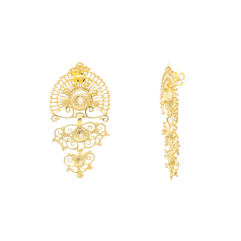 Brincos Luminis em Prata Dourada 925 e Pérola Branca - Colação Iluminar. Made in Portugal.