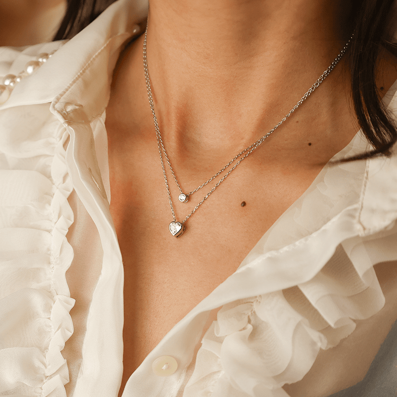 Delicado e cheio de significado, este fio duplo em prata combina dois símbolos eternos: a luz e o amor. O ponto de luz, representado por um zircão cintilante, reflete a pureza dos momentos mais especiais, enquanto o coração, com um zircão radiante no seu interior, simboliza a essência dos sentimentos verdadeiros.