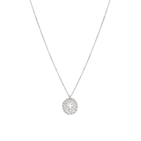 A medalha com efeito martelado adiciona uma textura única à peça, proporcionando um apelo visual interessante. A árvore recortada, muitas vezes associada a símbolos de crescimento e conexão, acrescenta um toque simbólico especial. No centro da medalha, a zircónia brilha delicadamente, adicionando um toque sutil de brilho e elegância.