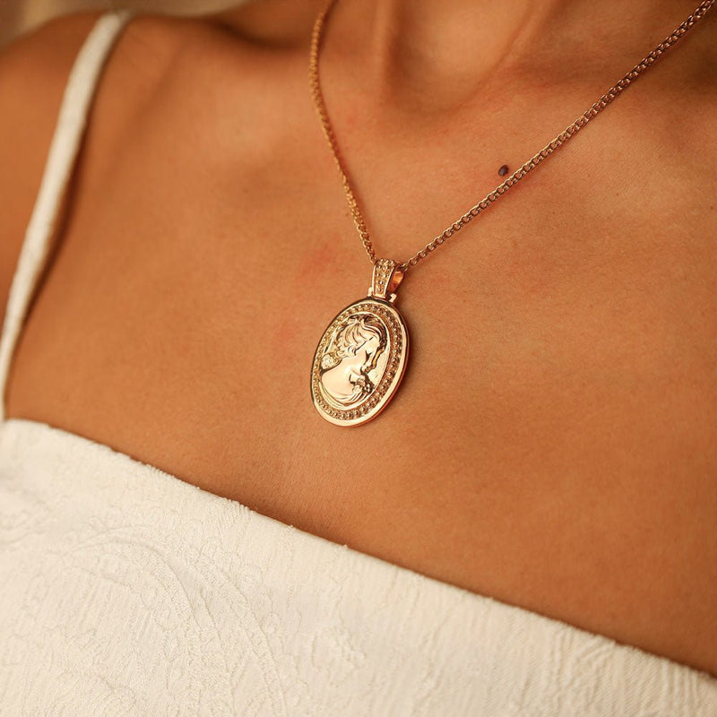 Inspirada na elegância da joalharia clássica, esta medalha camafeu é uma verdadeira peça de arte. O camafeu, com o seu delicado relevo feminino, evoca a tradição e a nobreza de tempos passados, enquanto o tom brilhante do ouro de 19kl confere um toque moderno e sofisticado, criando um contraste harmonioso entre o vintage e o contemporâneo.