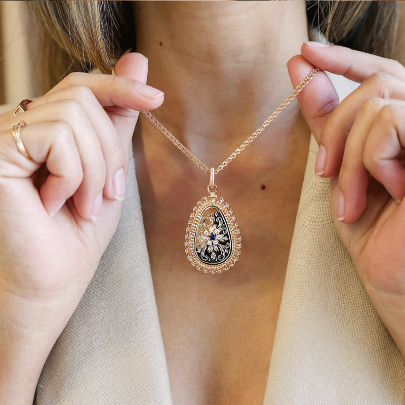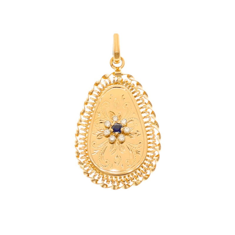 Medalhão Dona Flor em Ouro com Safira e Zirconias