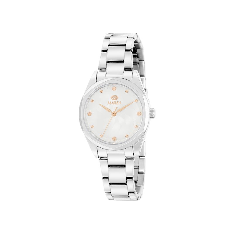 Feito em aço inoxidável prateado, o Monroe garante durabilidade e conforto. O seu visor de 32mm traz um equilíbrio perfeito entre delicadeza e presença, enquanto os detalhes em rose gold adicionam um toque de sofisticação e feminilidade.
