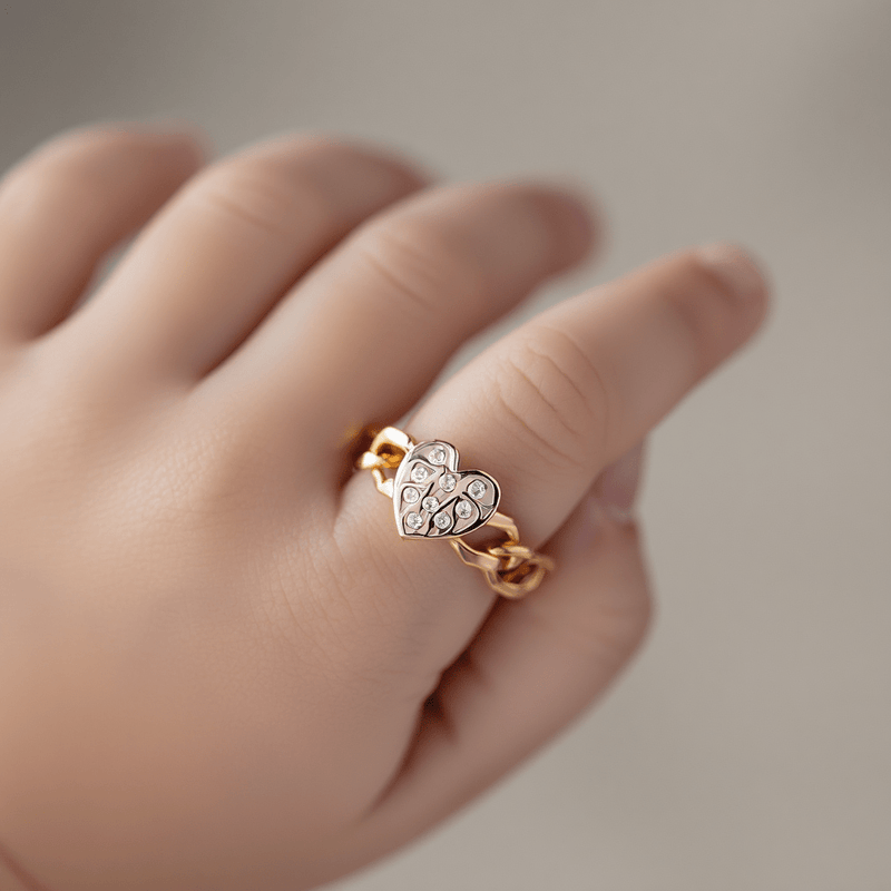 Anel de Criança em Ouro de 19.2kl com Coração cravejado de Diamantes – Doçura e Elegância desde Pequena