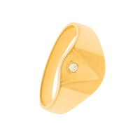 O Anel Mesa com Zircónia destaca-se pelo seu design moderno, onde a superfície em forma de mesa ganha personalidade com um triângulo estilizado que enquadra a pedra central. A zircónia brilhante acrescenta luminosidade e contraste, criando um visual marcante e sofisticado. As linhas geométricas do triângulo reforçam o caráter contemporâneo da peça, tornando-a única e cheia de identidade.