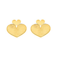 Cada brinco é uma composição harmoniosa: um coração pequeno e polido repousa delicadamente na orelha, irradiando um brilho vívido e espelhado que captura a luz de forma pura. Suspenso por este, um segundo coração maior emerge com um sofisticado efeito fosco brilhante, oferecendo uma textura aveludada e um reflexo mais contido, porém igualmente deslumbrante. A combinação destes corações contrastantes em prata dourada cria um jogo de luz e textura que é verdadeiramente hipnotizante.
