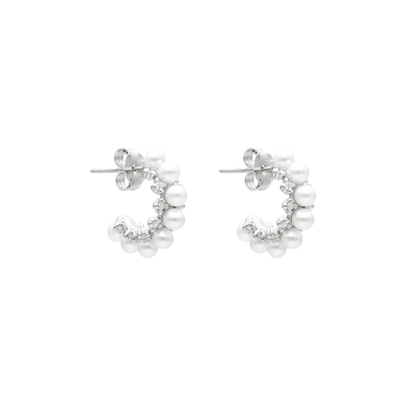 Argolas em Prata Branca 925 com Pérolas e Zircónias – Sofisticação em Três Fileiras