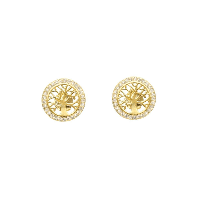 Brincos em Prata 925 Dourada com Arvore da vida cravejada de elegantes Zircónias
