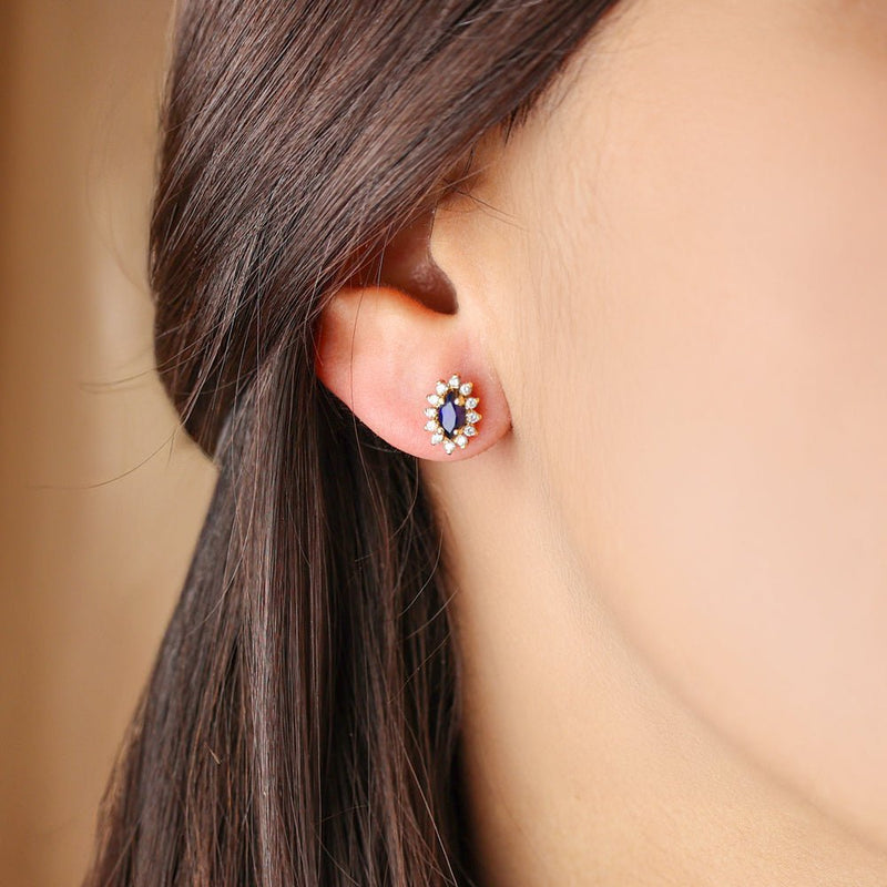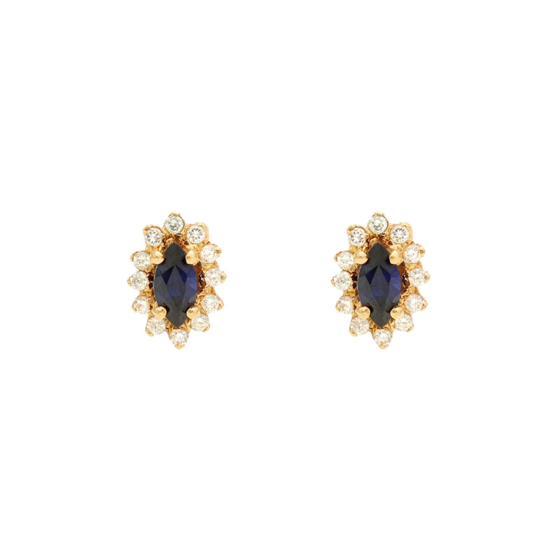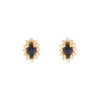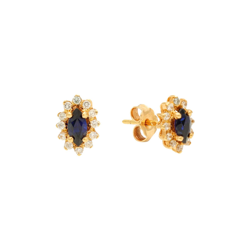 Brincos Chuveiro em Ouro de 19.2kl adornados de elegante Safira ladeada de zircónias