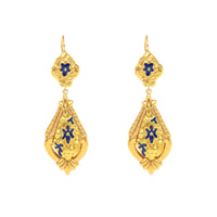 Brincos Dona Flor em Ouro de 19kl com Esmalte Azul