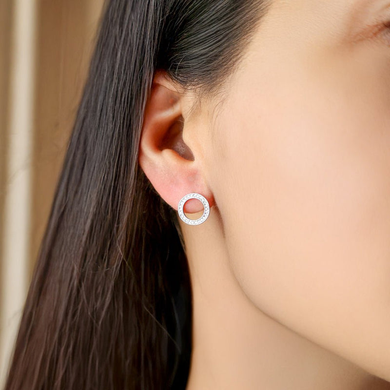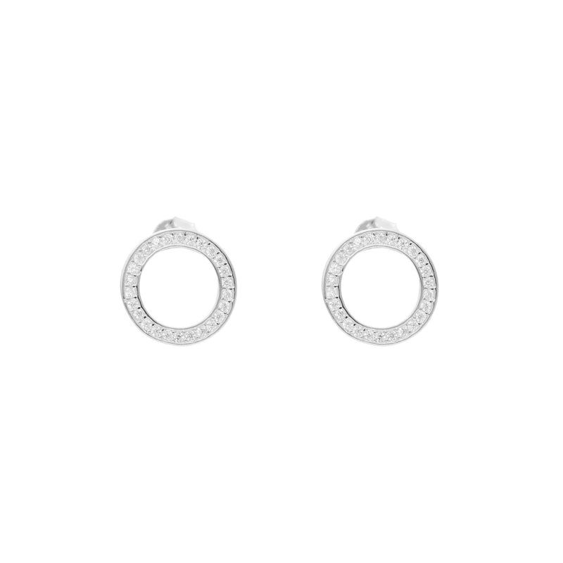 Brincos em Prata Branca (925) com Círculo Cravejado de Zircónias – Elegância e Brilho Intemporal