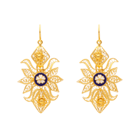 Brincos Folha Filigrana em Ouro 19kl e Esmalte Colorido (3.7cm)