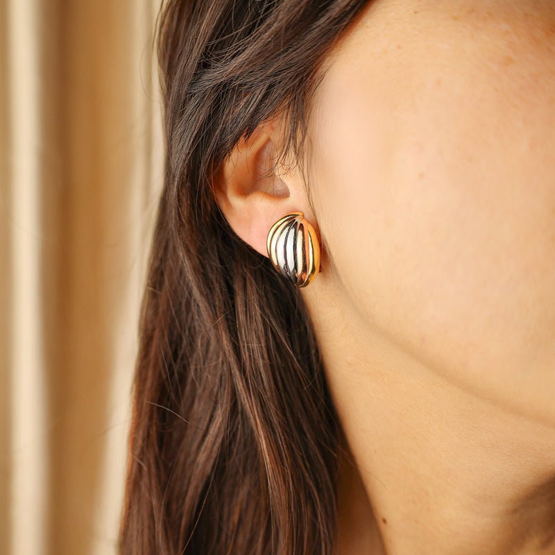 Brincos Meia Concha Tricolor em Ouro 19kl (2.2cm)