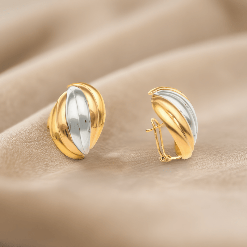 Brincos Meia Concha Tricolor em Ouro 19.2kl – Três Tons de Elegância Intemporal