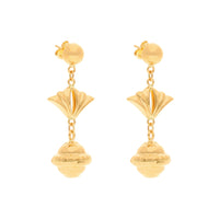 Brincos Pendentes em Ouro 19kl com Bola e Leque