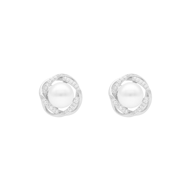 Brincos Rosa em Prata 925 adornados de Pérola e Zircónias