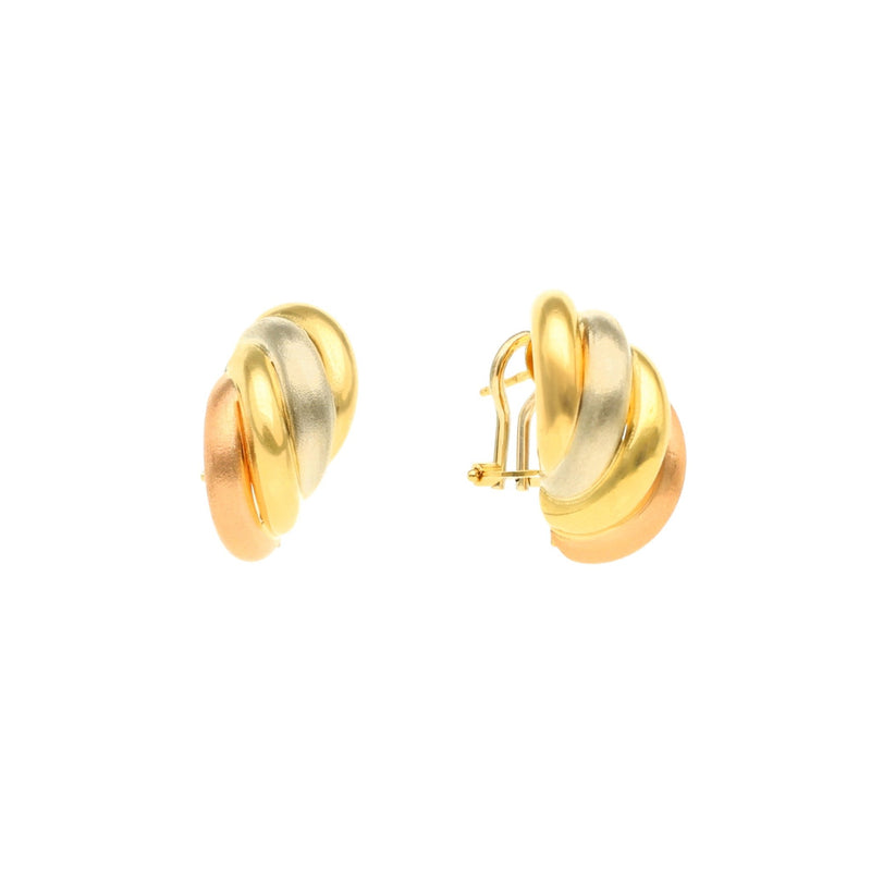 Uma joia versátil que une tradição e modernidade, perfeita para quem aprecia detalhes elegantes e exclusivos. Estes brincos tricolores em ouro são ideais para usar em qualquer ocasião, do dia a dia a momentos especiais, acrescentando um toque refinado e harmonioso ao visual.