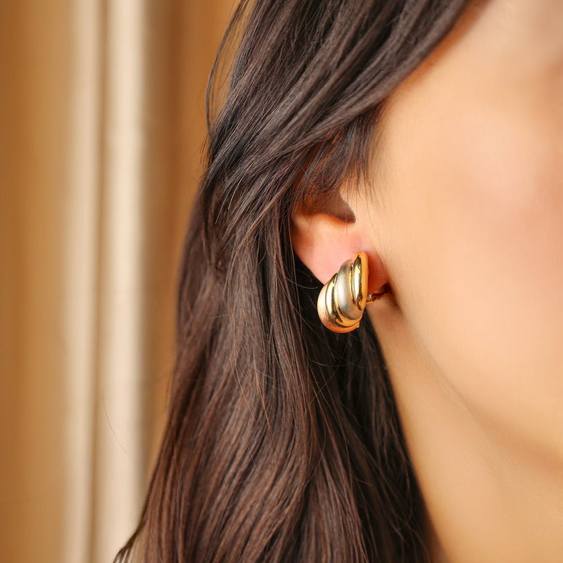 Brincos Meia Concha Tricolor em Ouro 19.2kl – Três Tons de Elegância Intemporal