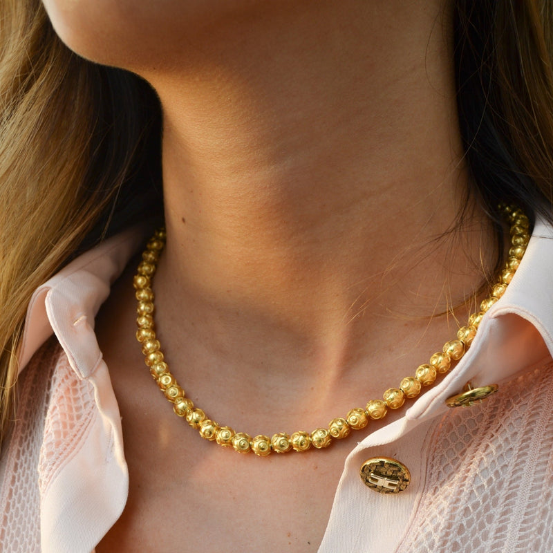 Fio em Ouro de 19.2kl, adornada de elegantes Contas de Viana.